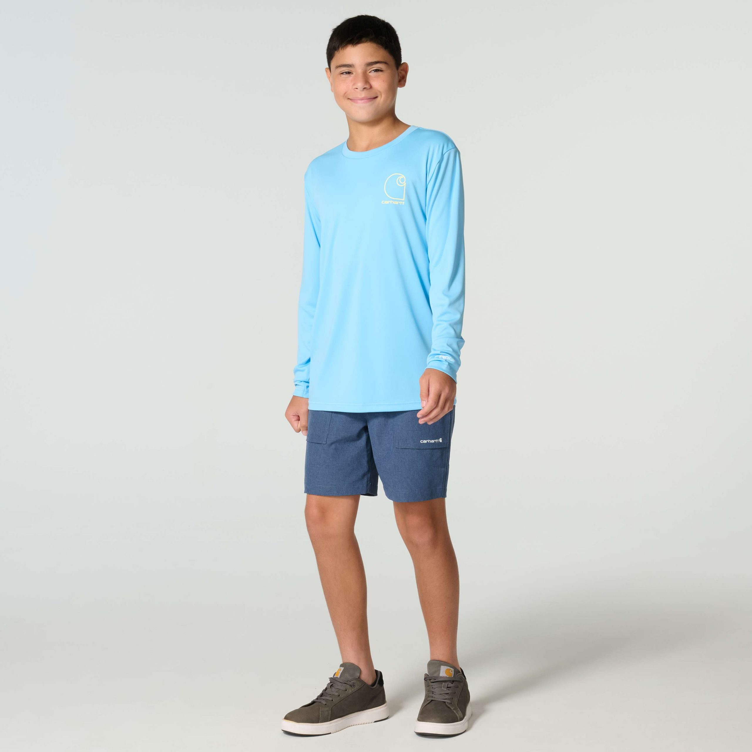 The river’s calling. This long-sleeve t-shirt shows off their love of the water with Carhartt fishing graphics in back. With UPF 50+ and a lightweight feel, it’s a comfortable choice for weekends outside and adventures of all kinds.