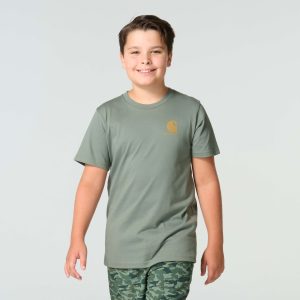 Dogs can teach kids about friendship and loyalty without saying a word. This Carhartt t-shirt shows his love of animals with dog graphics on the back. It’s made from soft cotton fabric that stands up to whatever kids throw at it.