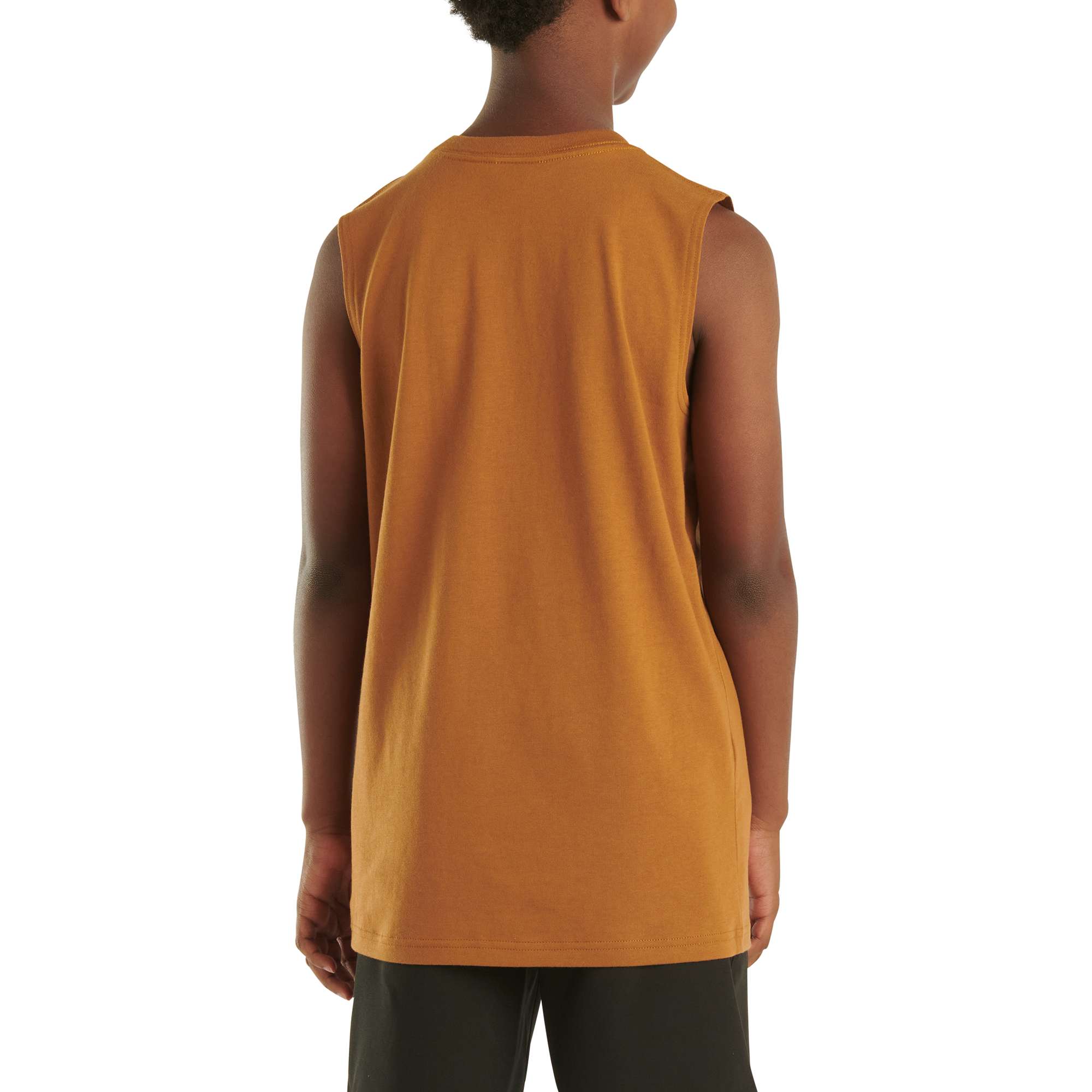 Built for warm weather, this boys’ Carhartt t-shirt has all the comfort and durability you expect. The sleeveless design is just right for doing chores in the heat or catching fireflies on summer nights.