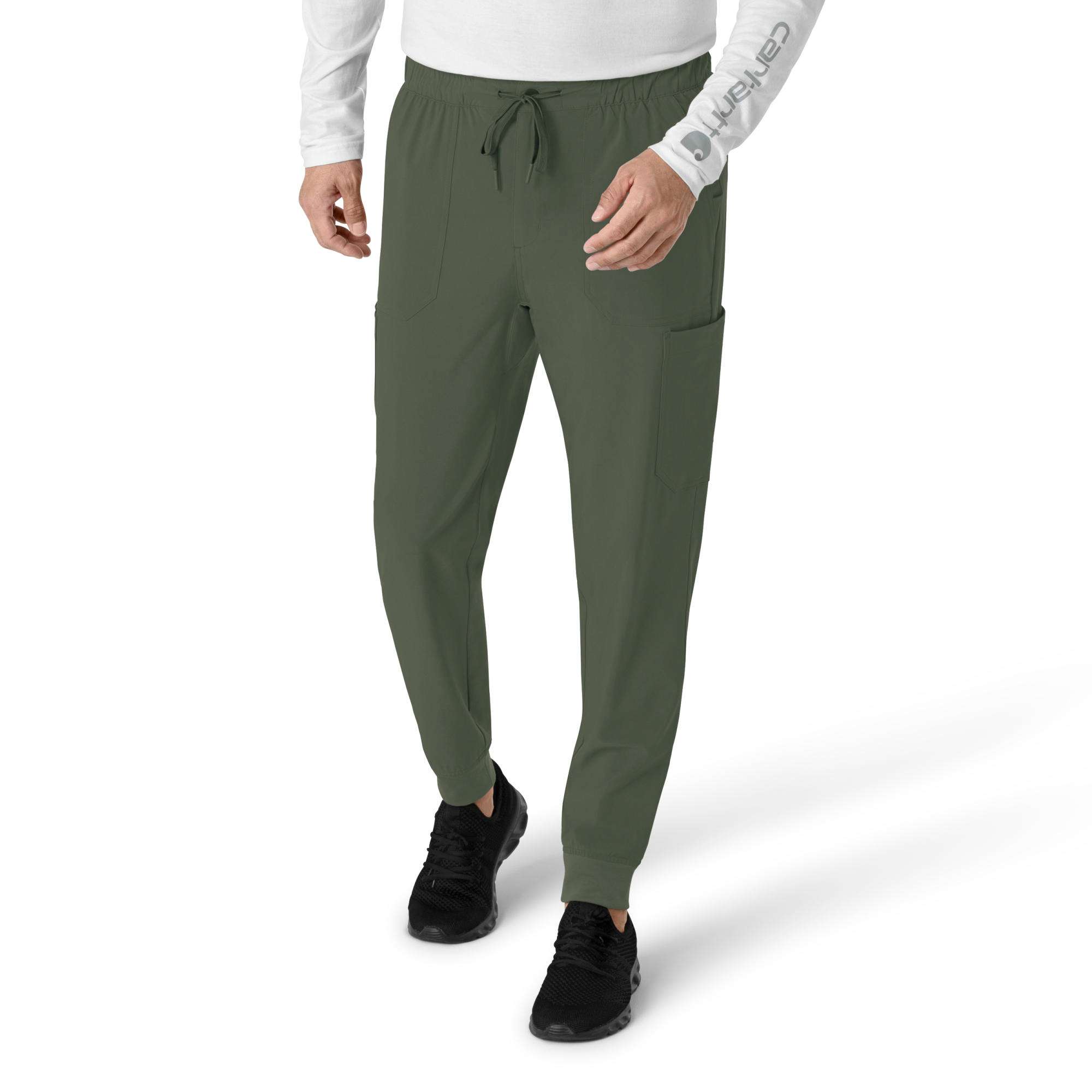 You deserve comfort during every shift because it’s what helps you do your best work. Blend the best of off-duty style with on-the-clock utility in these men’s jogger scrub pants. They fit like comfortable joggers with a sport-inspired silhouette but include plenty of purposeful pockets — your best assistant as you move from task to task and room to room. Two deep front slash pockets offer storage on the go, while two back pockets zip shut to keep smaller items in place. Cargo pockets take care of the rest. One on the right is built with utility loops to secure items like your glasses or badge. Another on the left is designed with an interior mesh pocket that keeps your phone handy but out of sight and out of the way. Ribbed cuffs taper the profile and let your feet move freely without anything in the way. Adjust the drawstring on the elastic waist for a just-right fit.