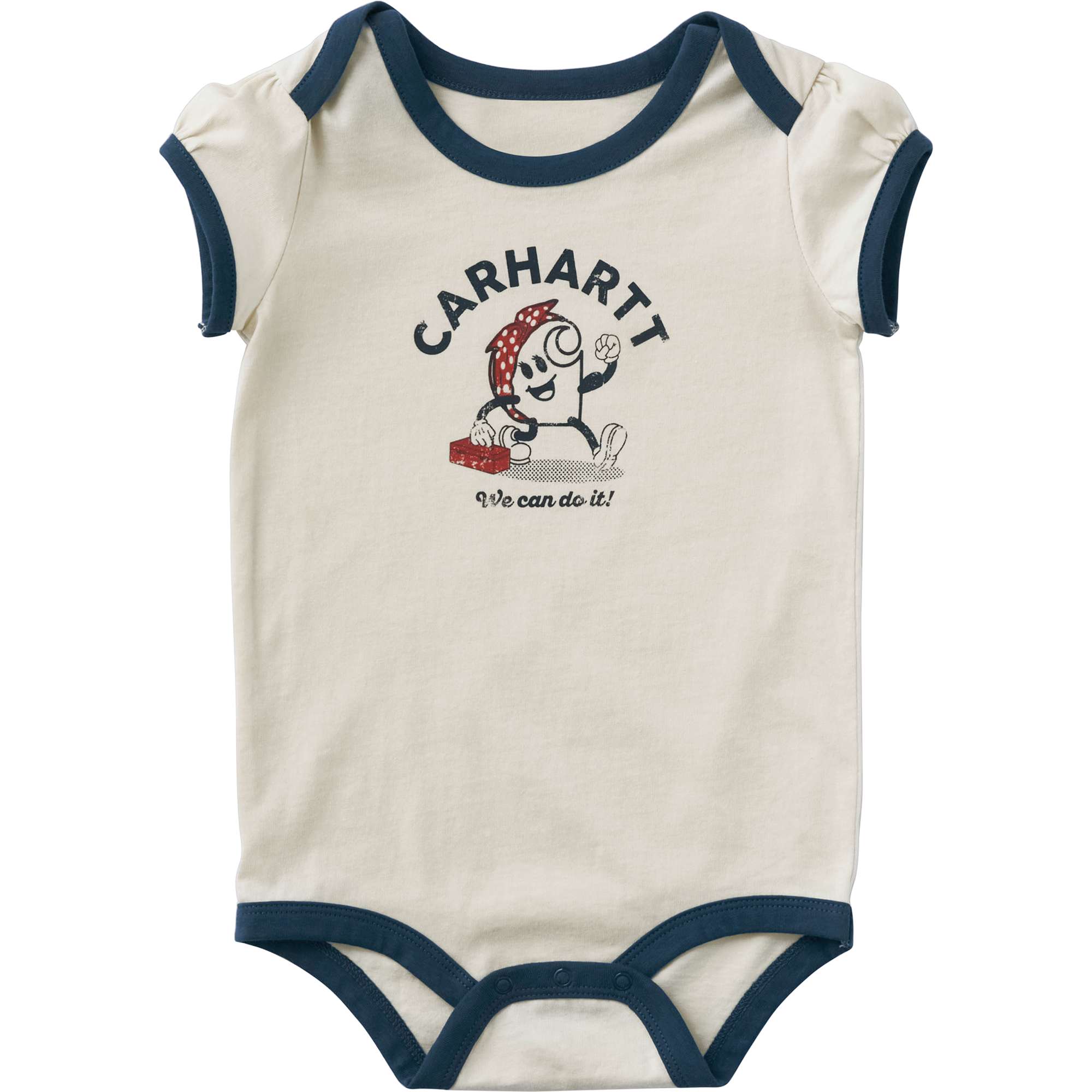 Small but mighty. This Carhartt bodysuit is designed for the next generation of builders, makers, and doers. The all-cotton fabric is soft yet strong, so it’s easy to wear and tough to wear out.
