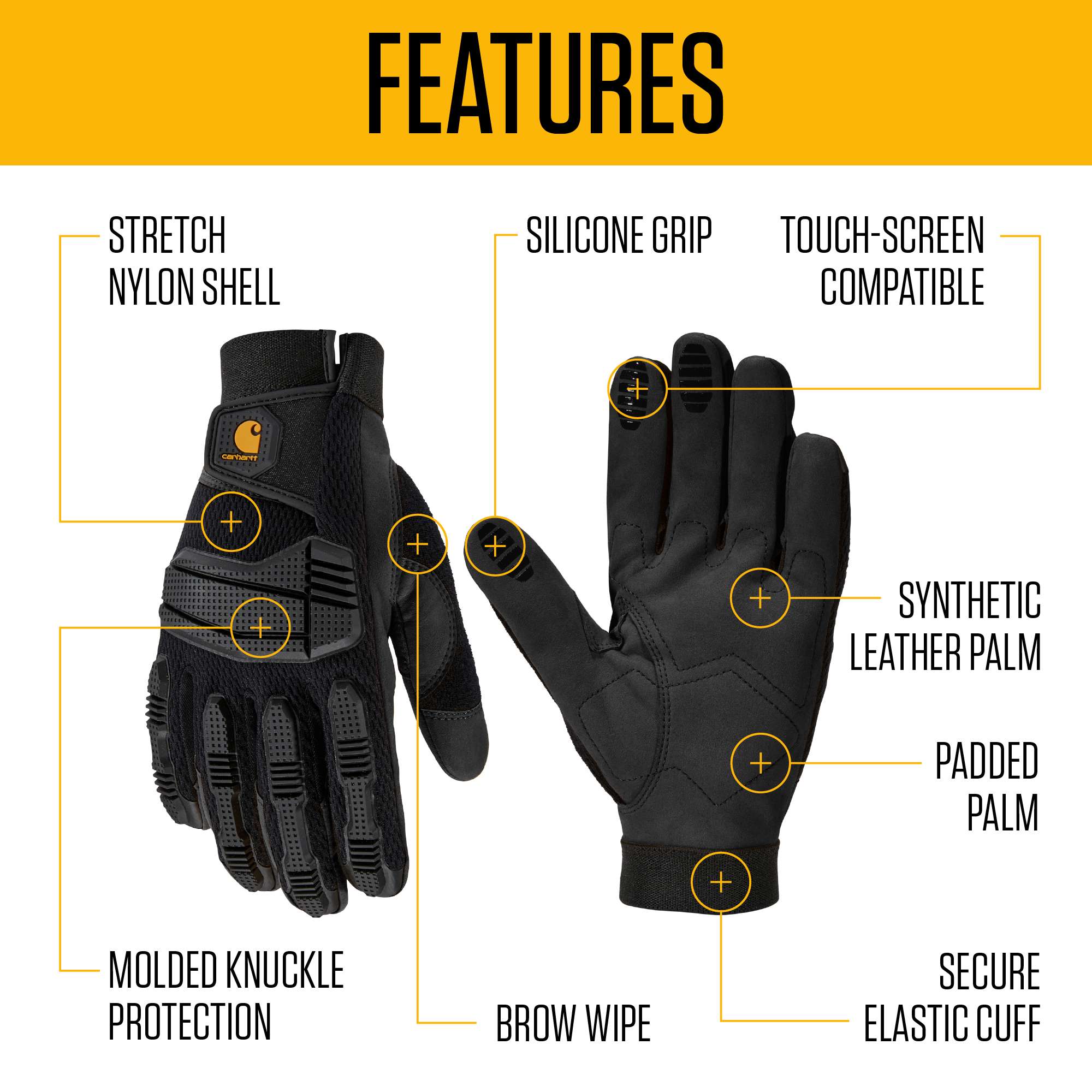 On the jobsite or on your home project, these men’s gloves offer protection when carrying heavy loads. The padded palm reduces vibration from power tools, and the brow wipe gives you a place to dry off some hard-earned sweat.
