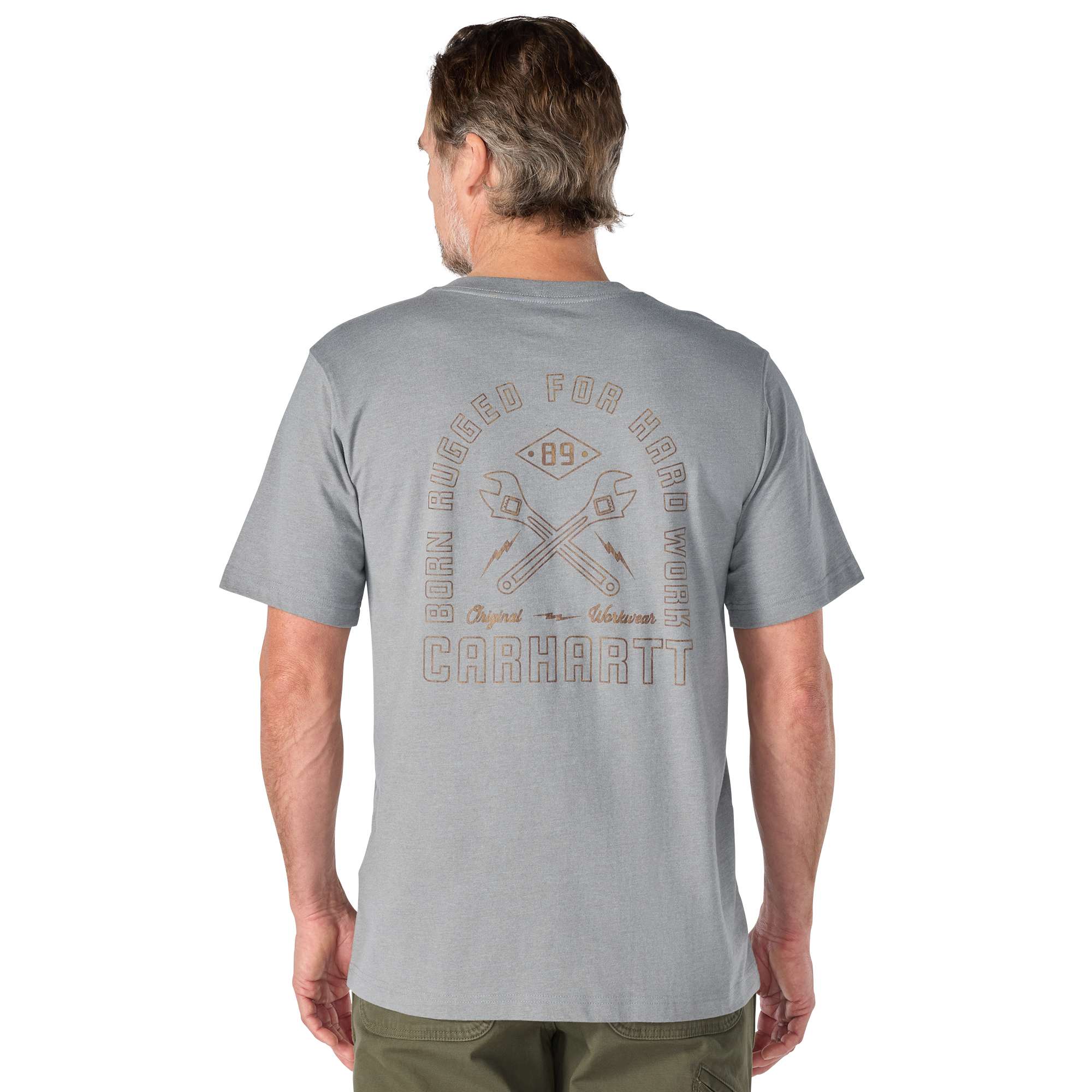 This men’s graphic tee was born rugged for hard work. The crossed tool and bolt illustration on the back embodies our hardworking heritage, while the durable material, reinforced chest pocket, and relaxed fit that sits closer to the body can help you build your own hardworking legacy in comfort.