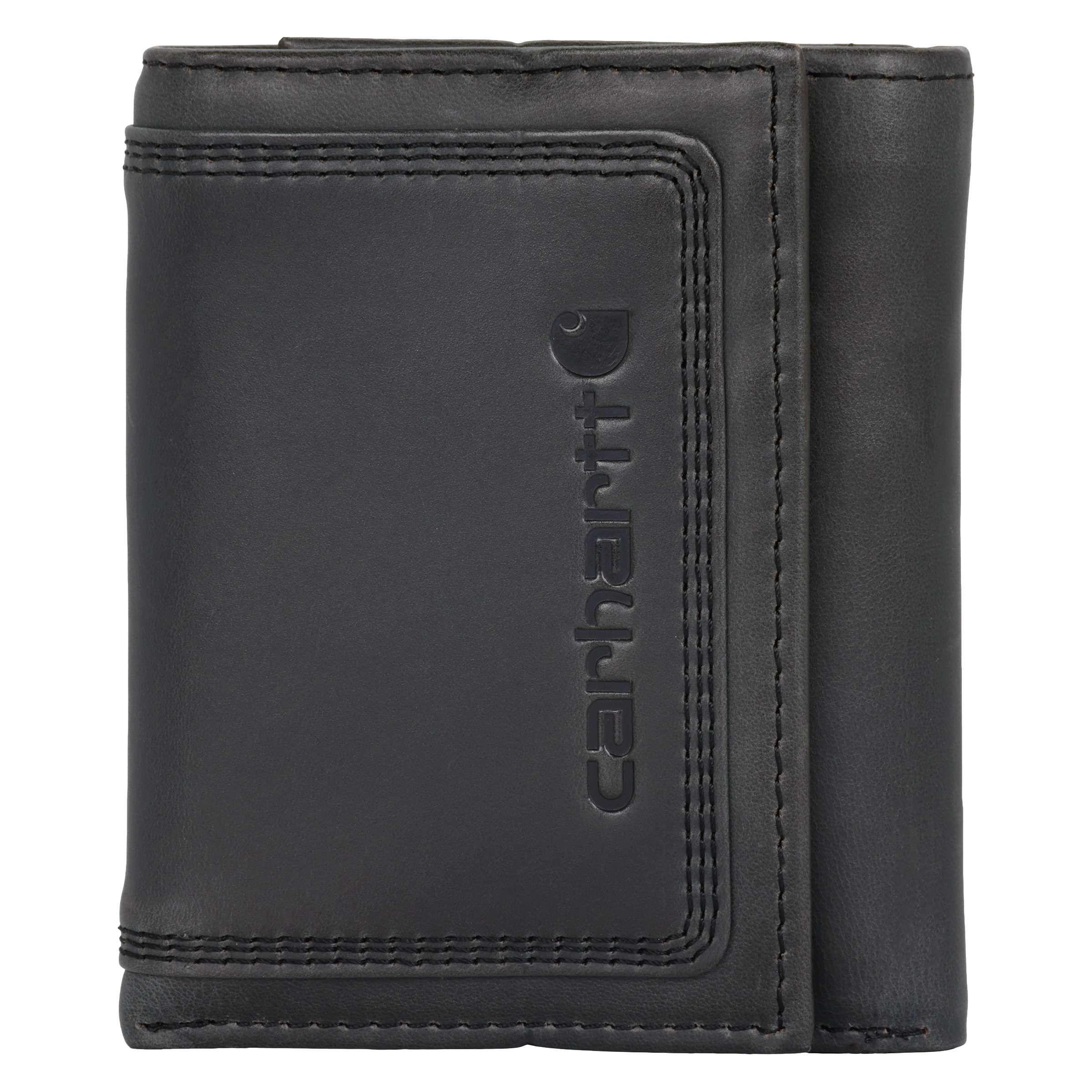 This men’s wallet has a simple, old-school design. It’s made of durable full-grain leather with a rich oil finish that has a slight shine. An embossed Carhartt logo is its seal of quality.