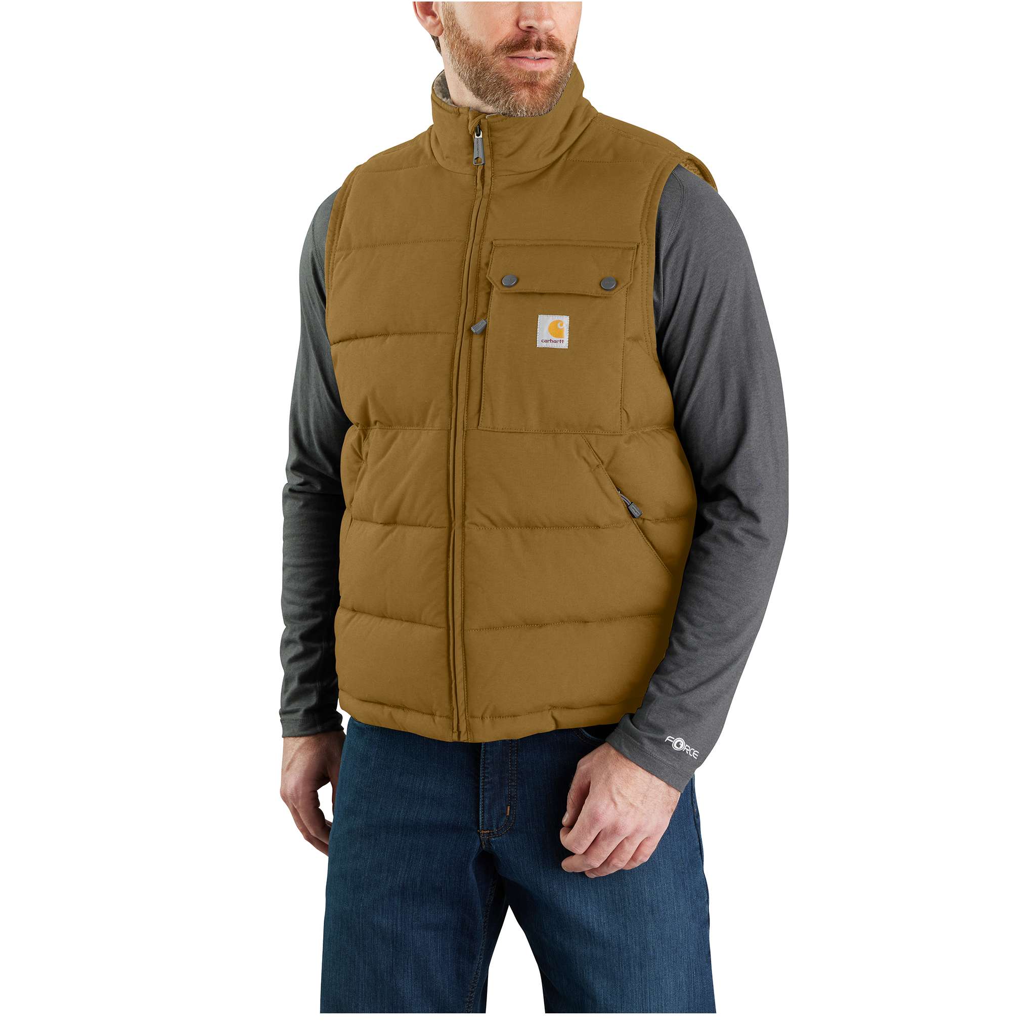Keep your core warm and dry in this men’s insulated vest when the weather takes a turn. Water repellent and wind resistant, it has a sherpa fleece lining and synthetic down insulation to keep chill winds and light rain or snow at bay. Pockets inside and out offer plenty of storage.