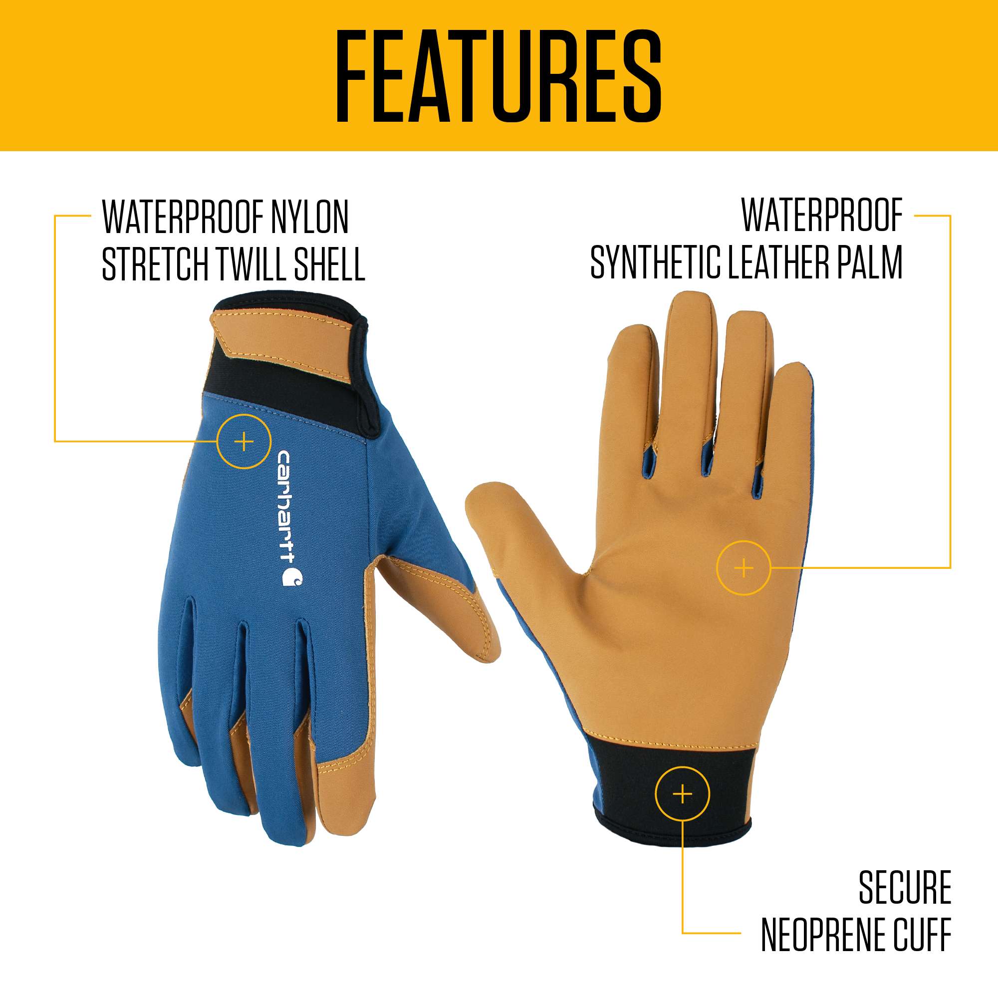 - Waterproof synthetic leather palm