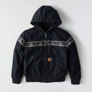Rugged and ready for hard work, the women’s Bethany Yellowtail jacket features a knit panel with an authentic pattern created by Bethany Yellowtail of the Northern Cheyenne and Crow Nations, a Native American woman-owned brand dedicated to sharing authentic Indigenous designs with the world. The jacket’s durable, soft duck canvas is insulated throughout and features Wind Fighter® tech to seal out windy conditions. A loose fit allows for easy layering and movement.