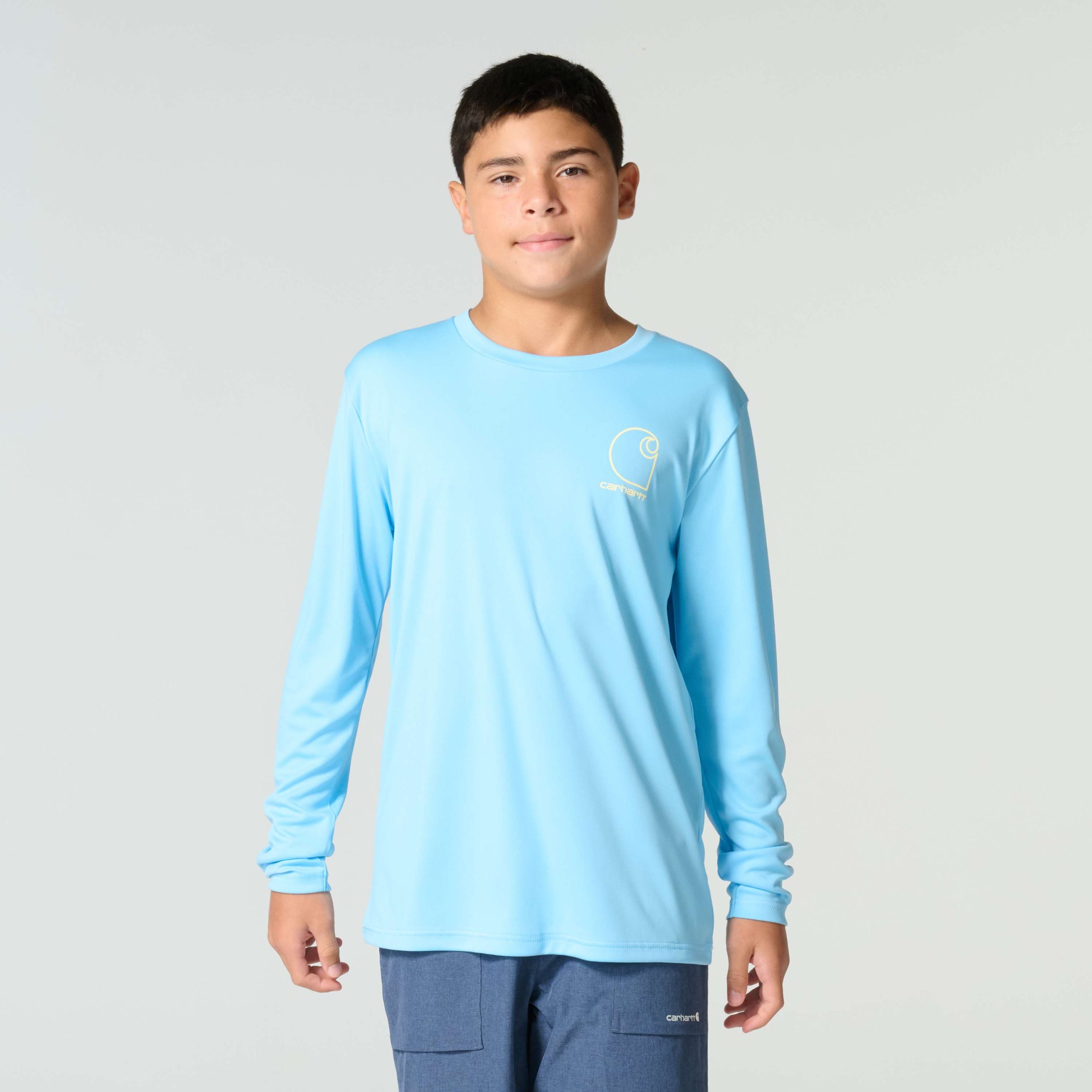 The river’s calling. This long-sleeve t-shirt shows off their love of the water with Carhartt fishing graphics in back. With UPF 50+ and a lightweight feel, it’s a comfortable choice for weekends outside and adventures of all kinds.