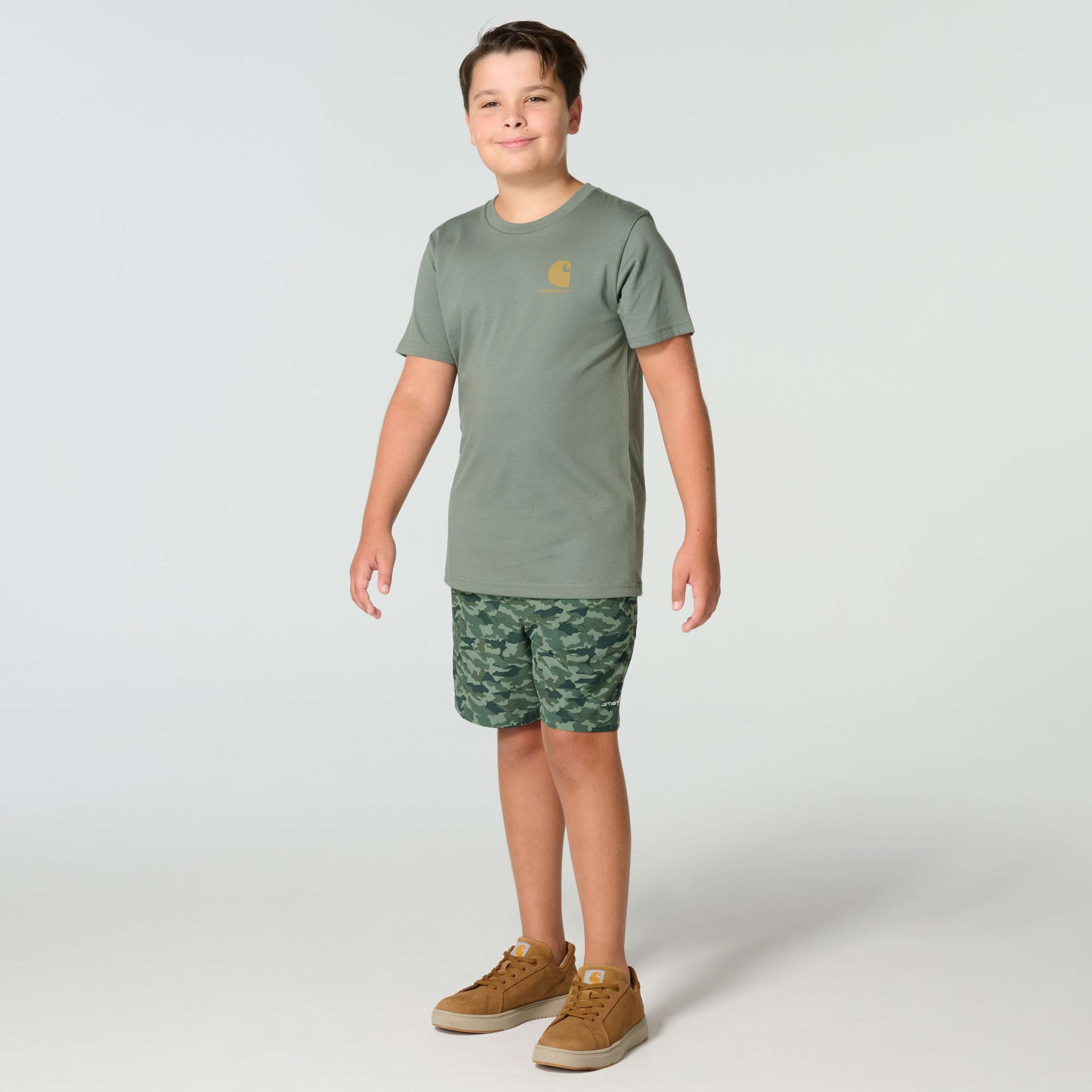 Dogs can teach kids about friendship and loyalty without saying a word. This Carhartt t-shirt shows his love of animals with dog graphics on the back. It’s made from soft cotton fabric that stands up to whatever kids throw at it.