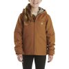 Zip up and hood up. It’s hunting season. Gear him up for it with this boys’ Carhartt jacket. Canvas gets a heavy dose of camouflage, so he can blend in behind a blind. Insulated pockets keep his hands warm and ready for action. Go ahead and get it dirty. It’s totally washable.
