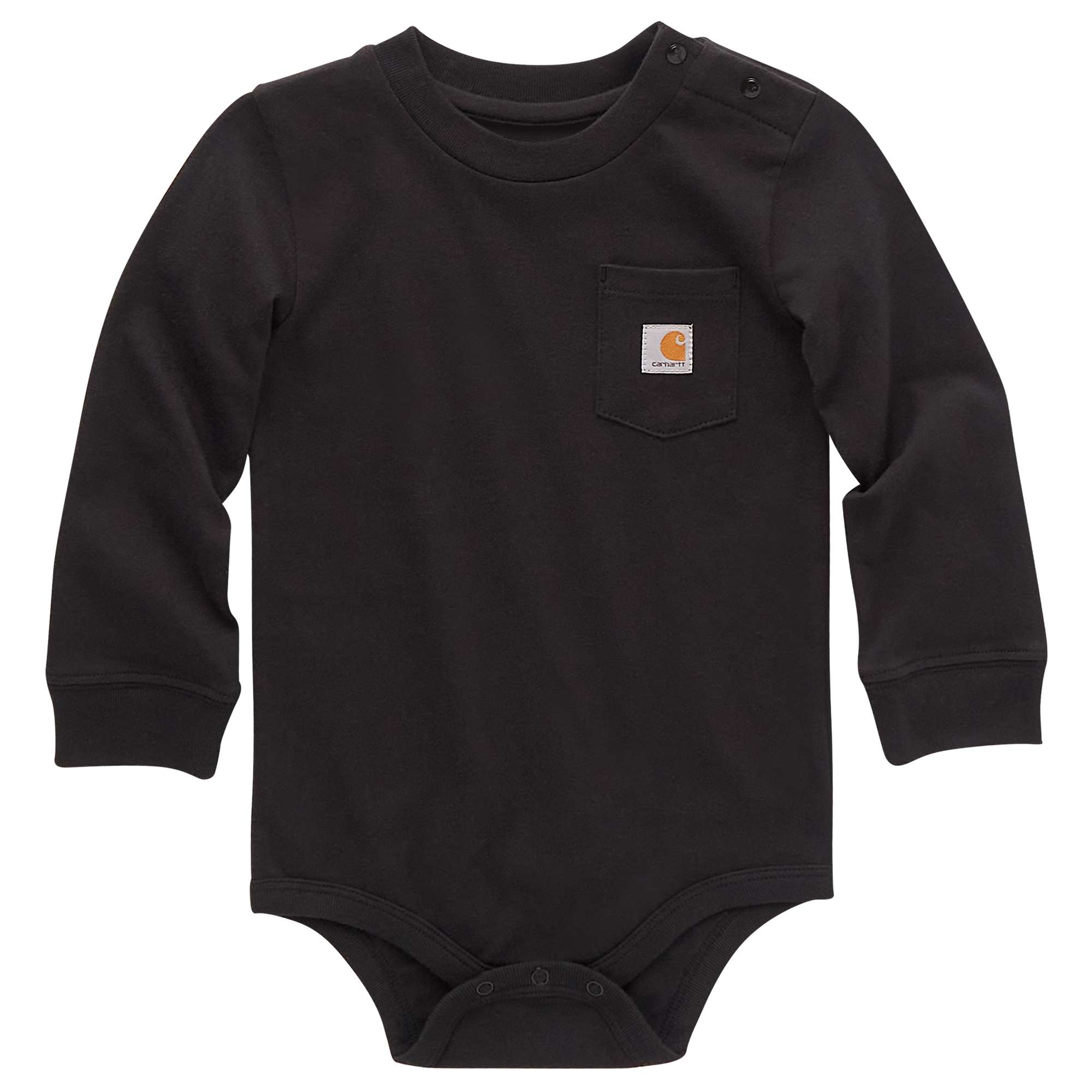 Carhartt is uncomplicated. This kids’ bodysuit proves that motto. The patch pocket with a stitched-on logo is all it really needs to get the point across. Soft cotton feels comfortable. And snaps make quick changes fast and easy. End of story.