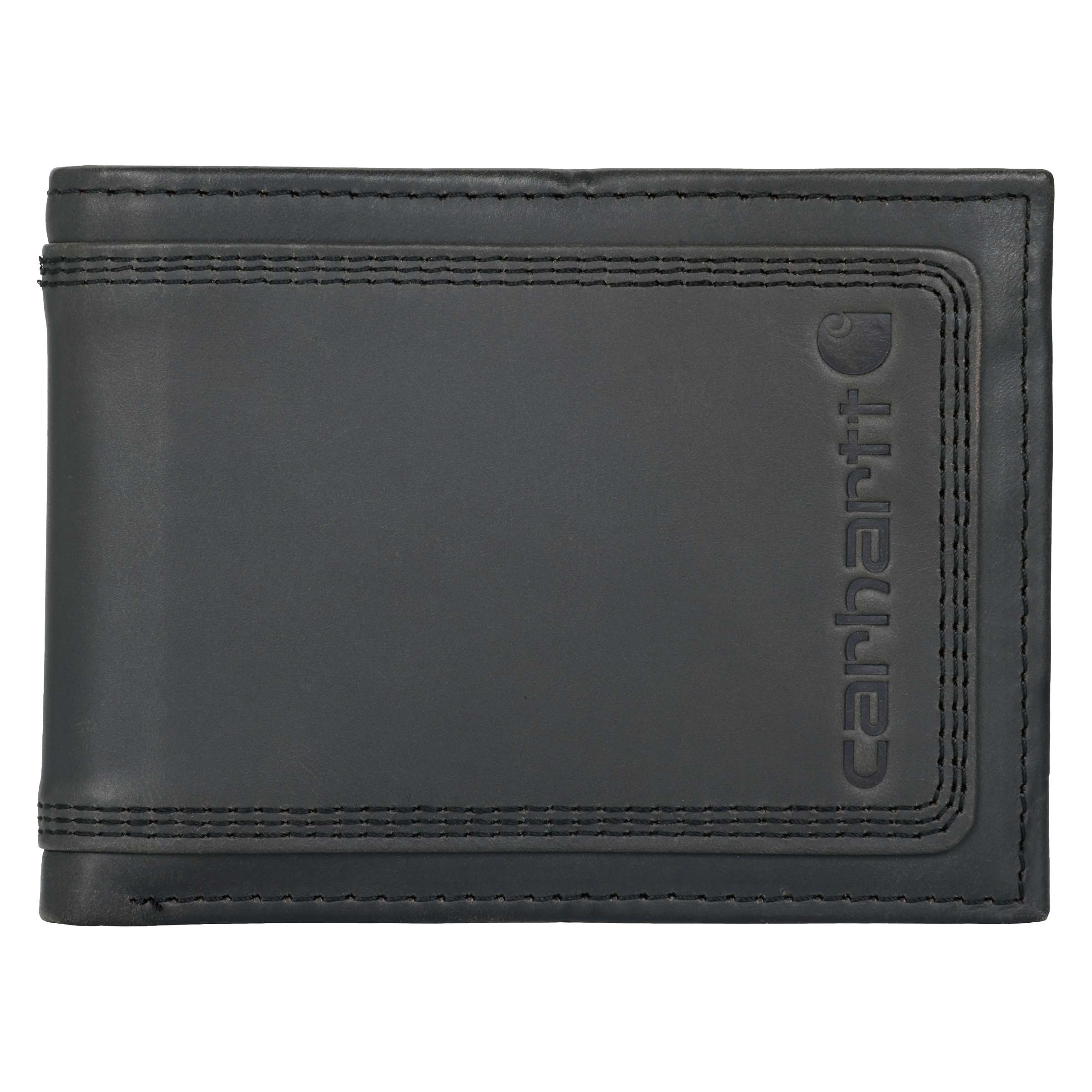 This men’s wallet has a simple, old-school design. It’s made of durable full-grain leather with a rich oil finish that has a slight shine. An embossed Carhartt logo is its seal of quality.
