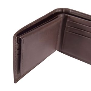 This men’s trifold wallet has a simple, old-school design. It’s made of durable full-grain leather with a rich oil finish that has a slight shine. An embossed Carhartt logo is its seal of quality.